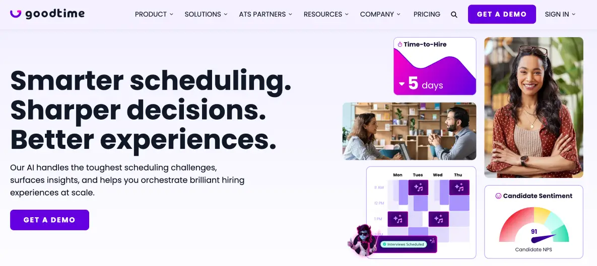 GoodTime helps with interview scheduling and talent coordination to automate 90% of the interview coordination tasks. This streamlines the hiring process and enhances the experience for both candidates and interviewers.