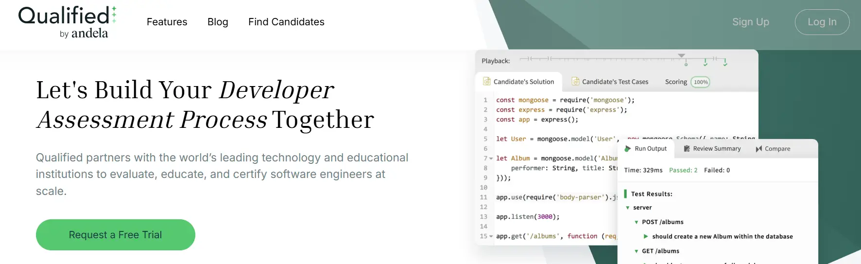 Qualified.io is another assessment platform for software engineers. Using developer-friendly tools, organizations use this one to build, deploy, and assess coding assignments and projects in real-world scenarios.