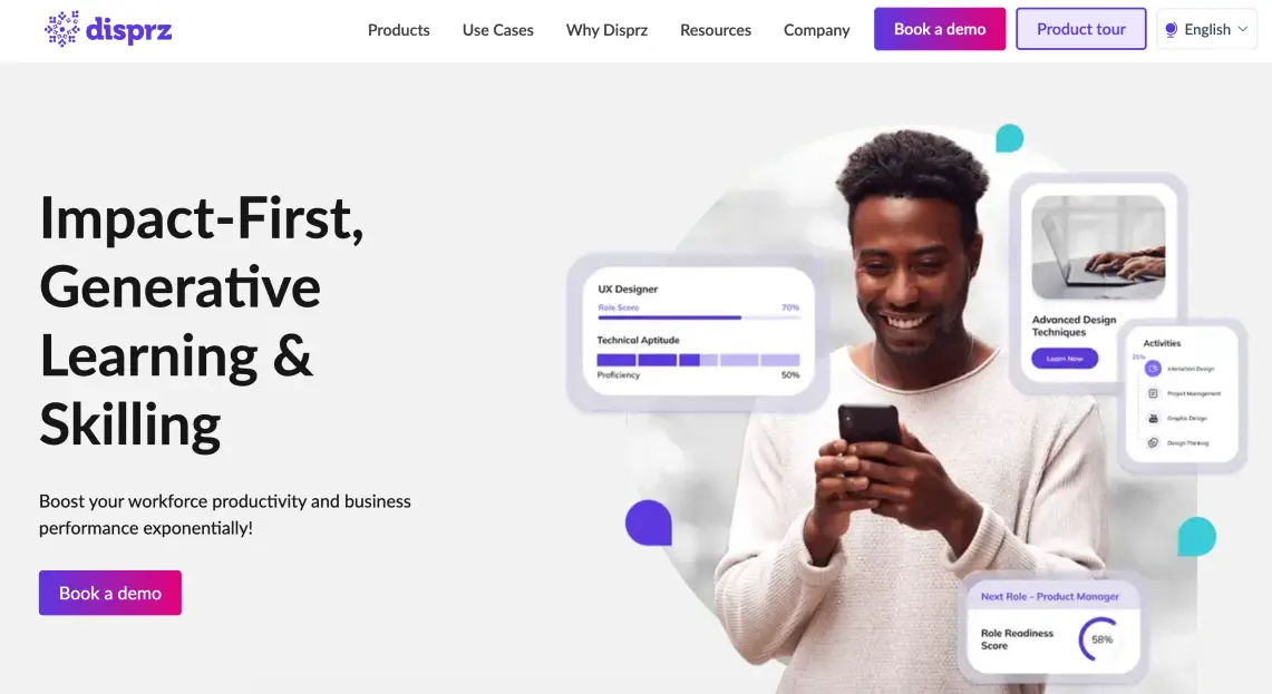 Disprz provides organizations with personalized training solutions, comprehensive analytics, and mobile-first delivery to help with workforce development. The system integrates a Learning Management System (LMS), a Learning Experience Platform (LXP), and skill-mapping features to enable organizations to enhance employee performance through continuous learning initiatives.