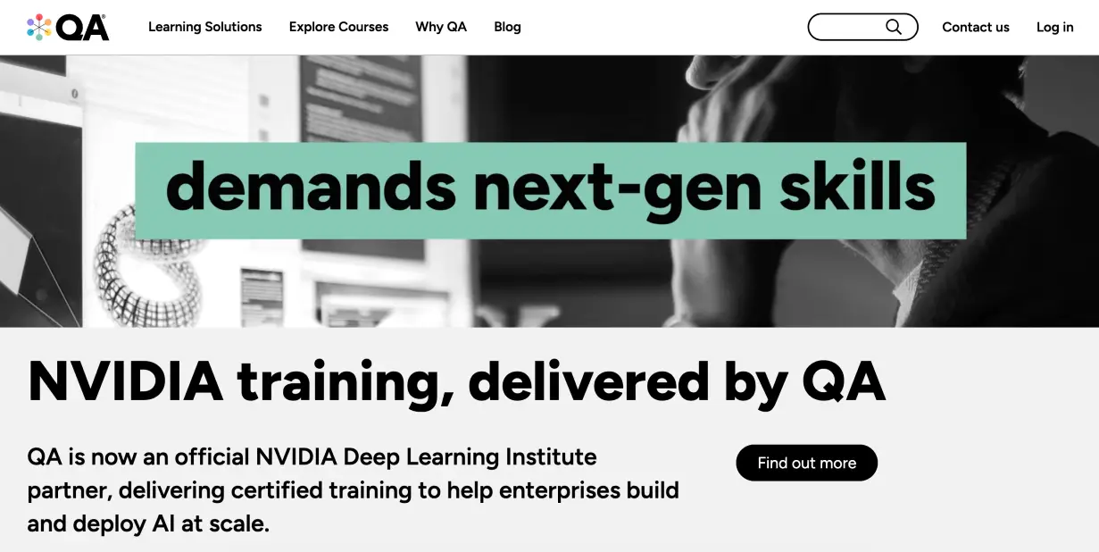 QA delivers global training solutions, including talent development programs that build technology and business skills through instructor-led courses, self-paced learning modules, blended training methods, and apprenticeship programs, to help teams develop AI, cloud, data, and leadership capabilities.
