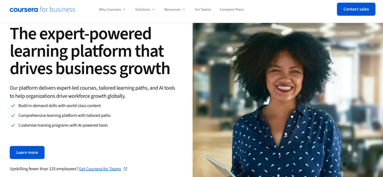 This platform provides expert-led courses, personalized learning paths, and analytics tools to help organizations develop job-specific skills. It offers educational materials from more than 350 top universities and companies that organizations can use to enhance employee productivity and career advancement.