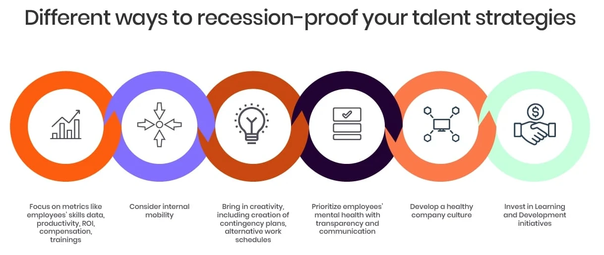 In a nutshell, your organization has to build strategies that can help recession-proof its business and talent strategy to be relevant during and after a recession. You must invest in upskilling and reskilling initiatives to maximize employee engagement, morale, productivity, and revenue generation and build a recession-proof organizational structure.