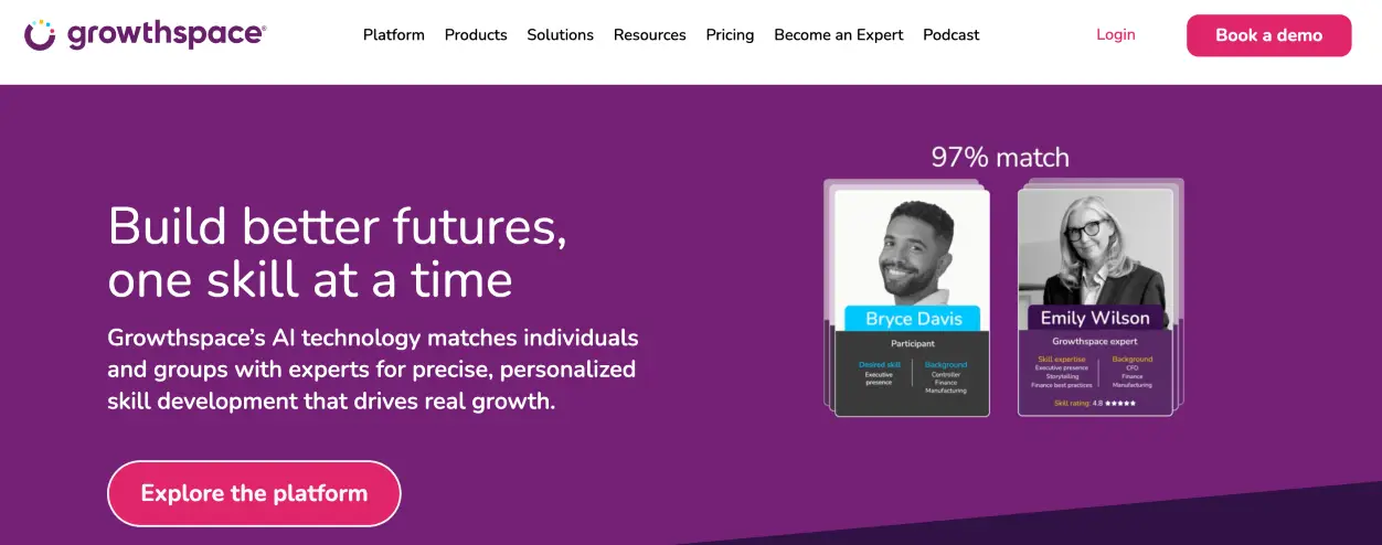 Growthspace is an AI-powered precision skill development platform that connects domain experts to individuals and cohorts for tailor-made development, upskilling, mentoring, and leadership or functional-training journeys. This way, the software helps companies identify skill gaps, deliver scalable development programs, and measure the impact.