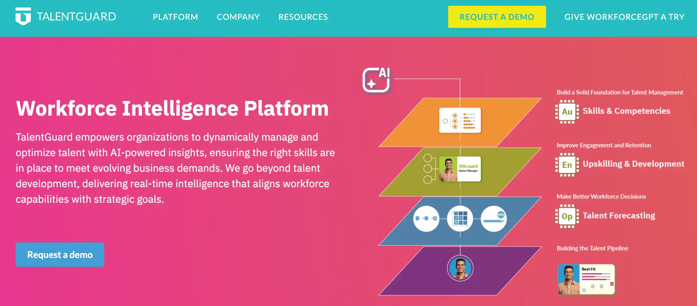 TalentGuard is an AI-powered talent intelligence platform that helps enterprises map, develop, and optimise their workforces. The platform revolves around career pathing, skills management, succession planning, and performance development, with a skills-first and equitable framework.