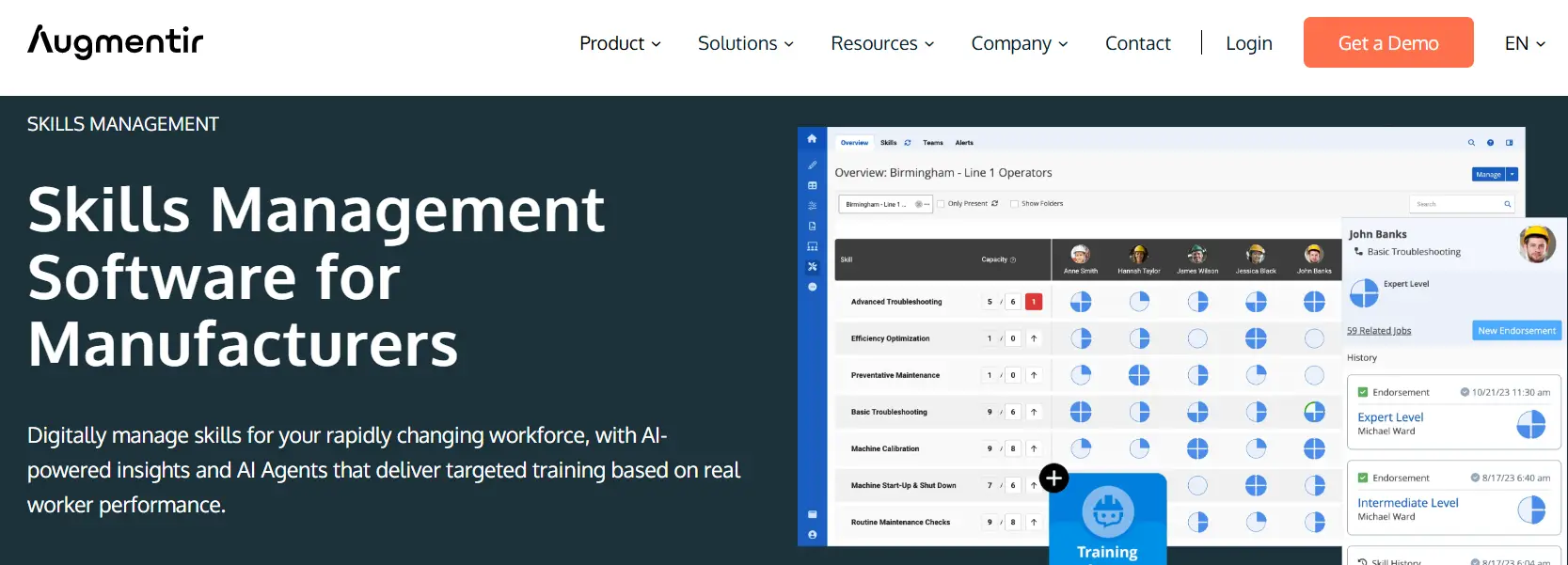 Augmentir is an AI-powered skills tracking software designed for frontline workforce development, helping organizations track, manage, and optimize employee skills in real time. It combines connected worker technology with AI-driven insights to identify skill gaps, improve training effectiveness, and enhance operational performance.
