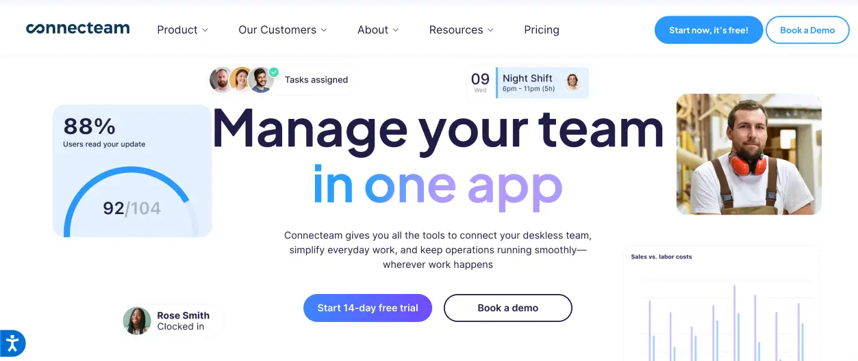 Connecteam provides a complete solution that addresses both workforce management and employee engagement needs, serving frontline workers and deskless personnel. The platform enables businesses to manage all essential functions through its mobile application, which combines scheduling, time tracking, HR documentation, task management, and communication training into one solution.
