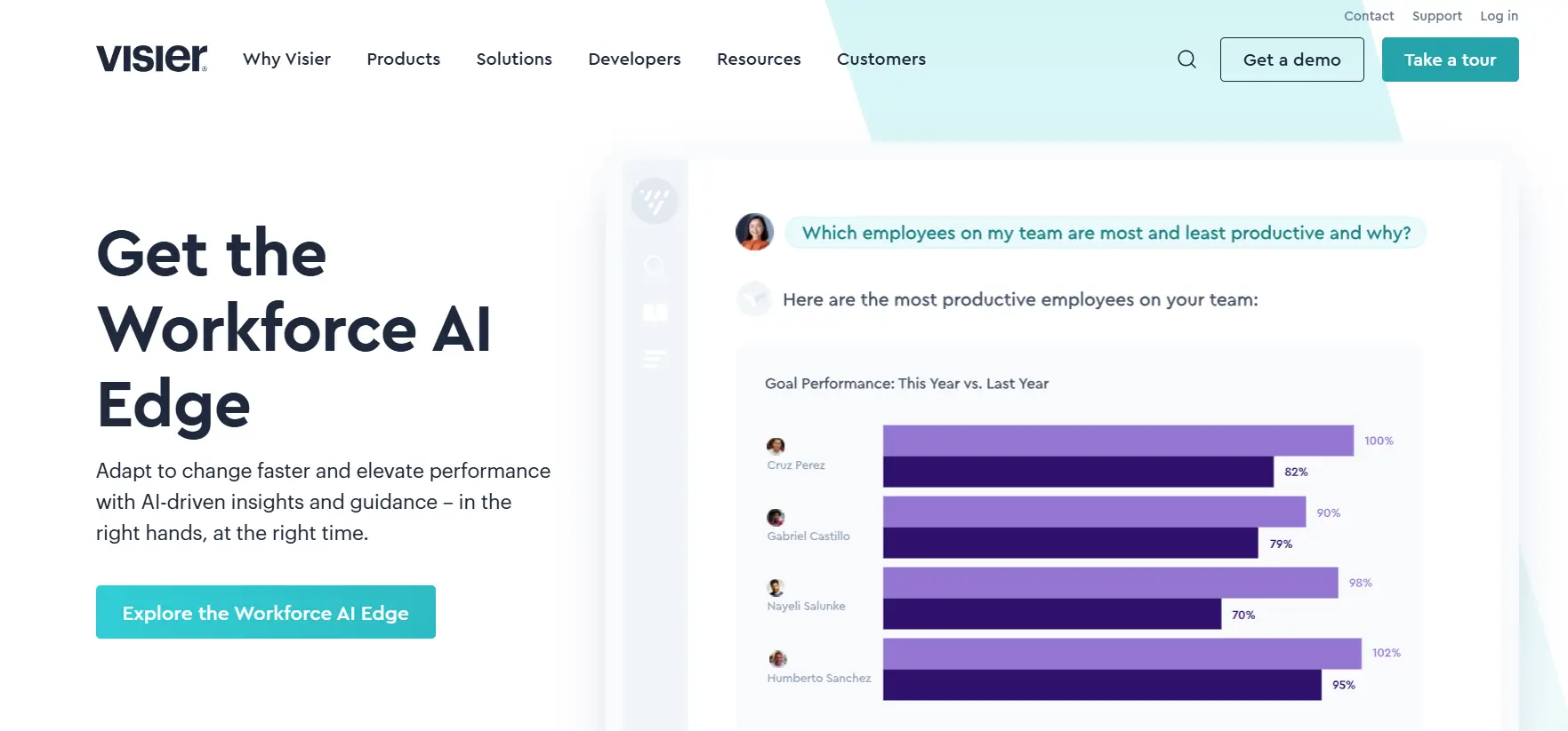 Visier is a powerful AI-driven platform for people analytics and workforce planning that consolidates HR and business data and provides insights for retention, mobility, productivity, and cost optimization.