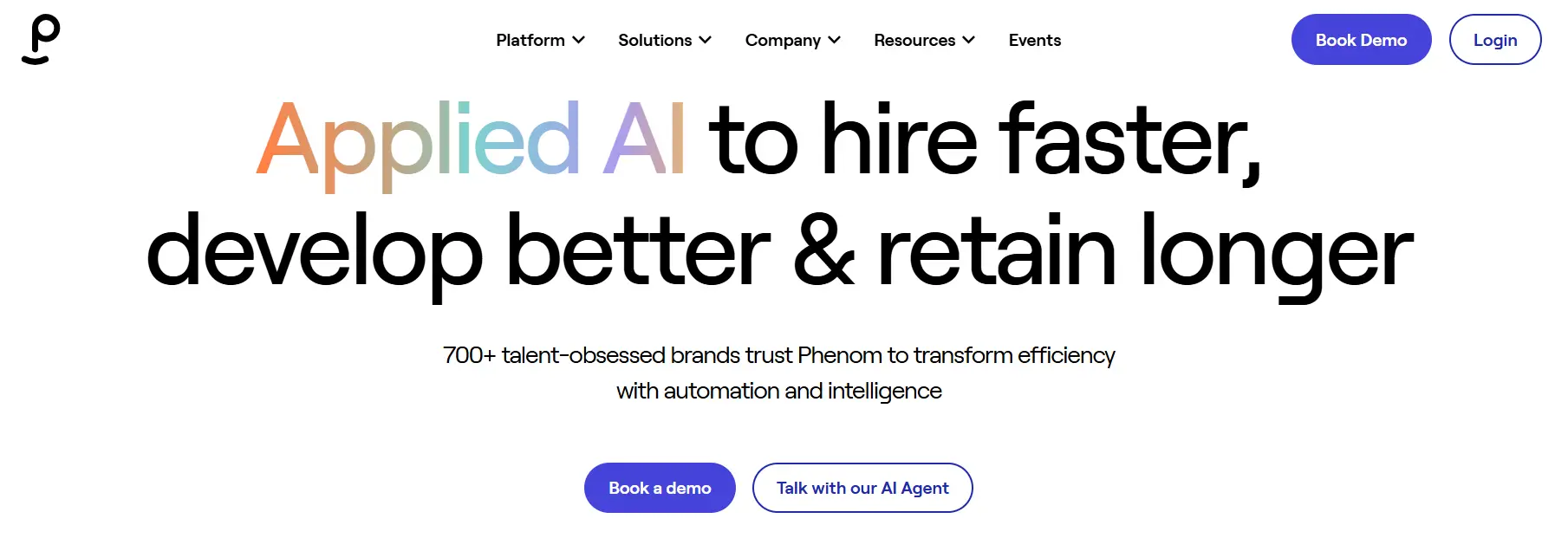 Phenom is an AI-driven talent experience platform that assists businesses in acquiring, engaging, and holding on to the best talent throughout their life cycle. It provides a cohesive talent ecosystem that unites career sites, candidate engagement, internal mobility, analytics, and automation.