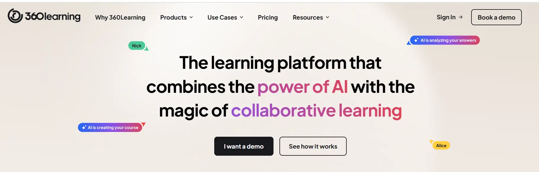 360Learning is a collaborative learning platform that empowers organizations to create, share, and scale training programs. It combines course authoring, learning delivery, and analytics in one solution, making it easier for L&D teams to build employee-driven learning experiences. With a focus on peer learning and knowledge sharing, 360Learning helps companies foster a culture of continuous development.