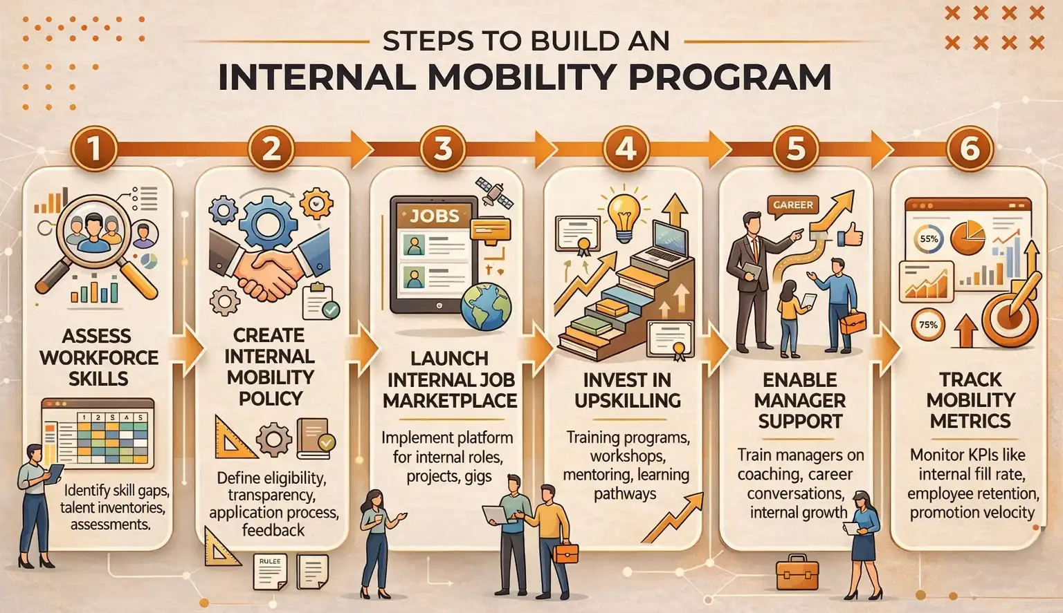 Monitor key metrics such as internal hire rates, promotion rates, and employee retention. Tracking these metrics helps organizations evaluate the effectiveness of their internal mobility program and identify areas for improvement.